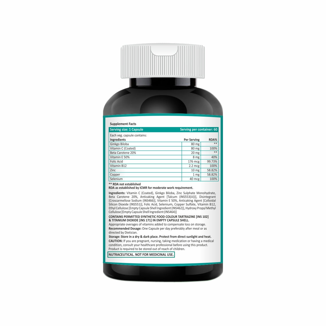Guard Age Veg Capsules are formulated with Ginkgo Biloba, Folic Acid, Vitamin E, and essential minerals like Copper and Selenium to support healthy blood flow. These ingredients help improve vascular flexibility, enhance oxygen delivery to the brain and body, and reduce circulatory stress. Improved circulation not only boosts heart and brain health but also promotes energy, alertness, and overall vitality—helping you stay active and sharp as you age.